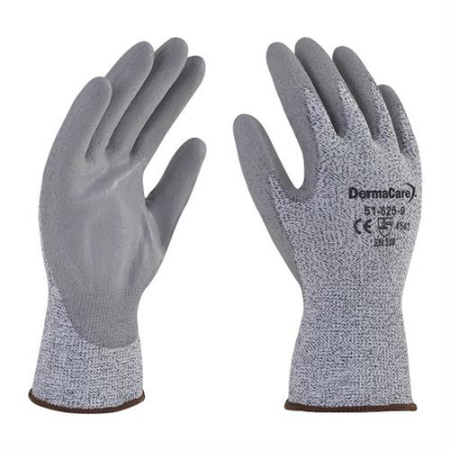 Guante anticorte de polietileno de alta densidad y fibra de vidrio con poliuretano gris en palma y puño tejido de punto ribeteado. Tejido de polietileno de alta densidad y fibra de vidrio, su palma de poliuretano incrementa la protección en este modelo. El novedoso tejido es 15 veces más resistente que un hilo del mismo grosor del acero. Puede usarse en industrias de vidrios y cristales, manipulación de herramientas con filo, trabajos de metalurgia.