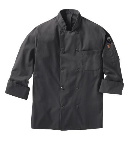 Cuenta con cuello alzado, con forro de malla que proporciona un aspecto profesional y te mantiene fresco y confortable. Con solapas cruzadas y diez botones con protección ultra violeta para evitar que se vuelvan amarillentos.