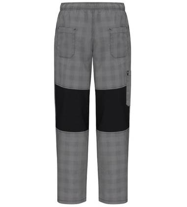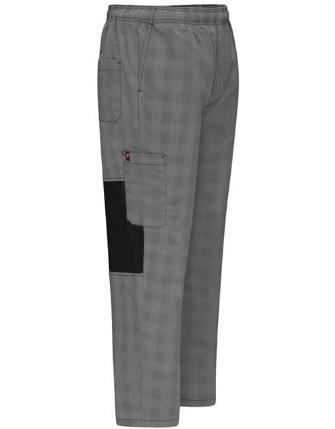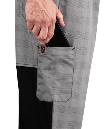 Una manera de mantenerse fresco y cómodo es con estos pantalones para Chef, en corte baggy. Sus paneles de malla stretch en la cintura y detrás de las rodillas proveen gran frescura, mientras que las bolsas son convenientemente útiles para poner las herramientas necesarias. El corte es recto desde la parte alta de la pierna hasta más abajo de la rodilla, y a la altura del muslo tiene un ajuste para dar un aspecto más sofisticado.