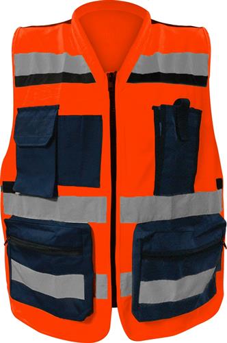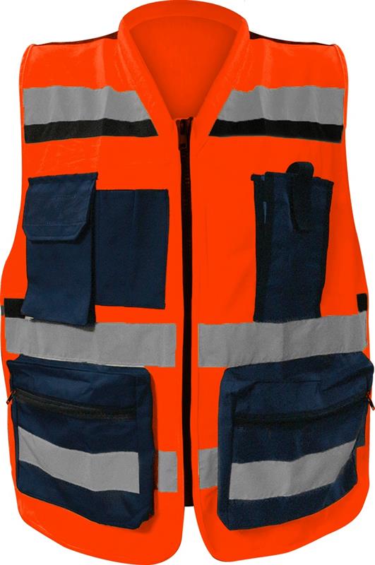 El chaleco tiene como función principal mejorar la visibilidad y la organización de aquellos que trabajan en entornos de construcción, ingeniería o supervisión. Su diseño con reflejantes textiles de 2 pulgadas garantiza la visibilidad tanto de día como de noche. Las múltiples bolsas proporcionan un espacio conveniente para llevar herramientas, dispositivos y otros objetos personales, lo que facilita la ejecución de tareas en el lugar de trabajo.