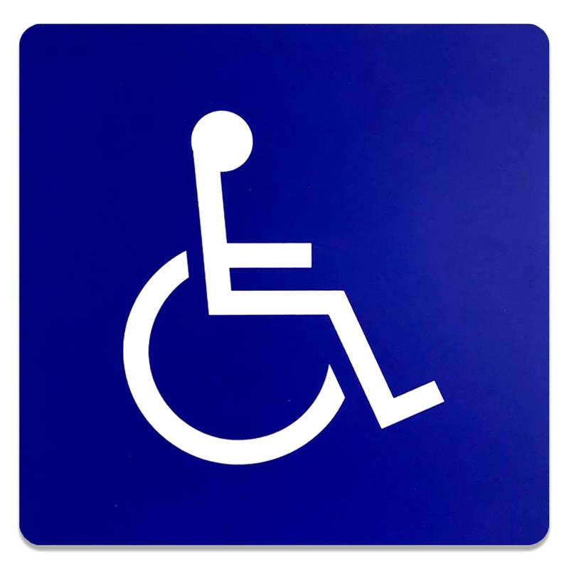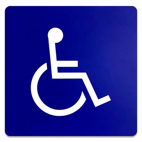 - Diseño: Presenta el símbolo internacional de acceso para discapacitados en color blanco sobre un fondo azul.