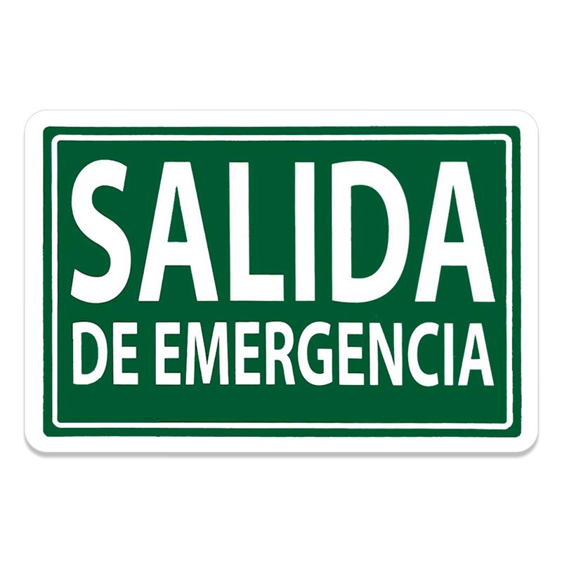 - Diseño gráfico: Texto en color blanco que indica "Salida de Emergencia" sobre fondo verde.