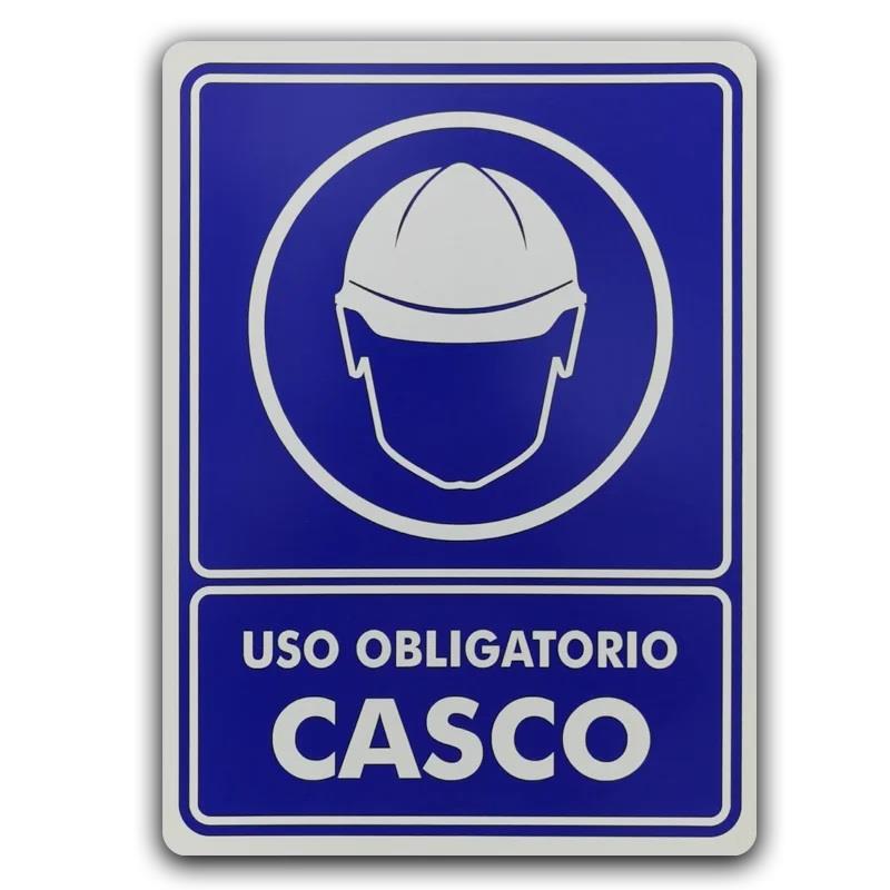 - Mensaje Visual: Incluye un pictograma que representa a una persona usando casco, lo que facilita la comprensión incluso para aquellos que no hablan el idioma.