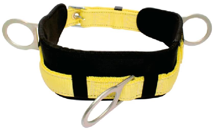 La función principal del cinturón de nylon es brindar soporte y posicionamiento seguro para los trabajadores que realizan tareas en altura, como en construcción, trabajos en andamios, limpieza y mantenimiento de edificios, y situaciones de rescate. El cinturón está equipado con anillos "D" en los costados y la espalda para la conexión segura de cuerdas y otros componentes de seguridad. También ofrece comodidad gracias a su almohadilla y es ajustable para adaptarse a la cintura del usuario.