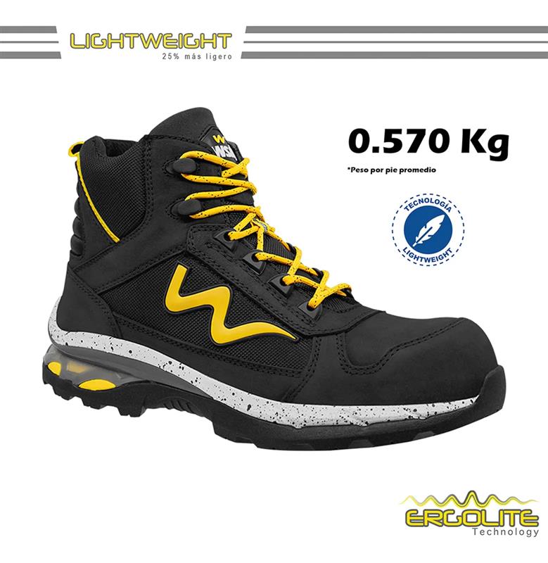 Cuenta con puntera de policarbonato, más amplia y ligera, y un forro textil Drilex 100% transpirable, que lo hacen ideal para largas jornadas en pisos contaminados con aceites, grasas, ácidos, solventes y gasolinas. Su diseño tipo borceguí protege el tobillo con una altura de 16 cm y ofrece estabilidad en cada paso gracias a su sistema Comfort Flex y plantilla anatómica antibacteriana.