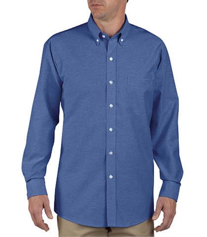 La camisa SS36 de manga larga y SS46 de manga corta están compuestas por una tela Oxford de 4.5 oz 60% Algodón y 40% Polyester. El algodón le brinda suavidad y frescura. El cuello es de dos piezas para darle más cuerpo y el botón la hace ver más formal. La parte trasera es más larga que se mantenga dentro del pantalón, tiene pinzas en la espalda y apertura en la manga para darle más comodidad. Con la calidad Dickies tiene acabado resistente a las arrugas y a las manchas.