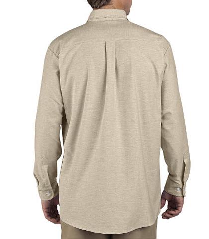 La camisa SS36 de manga larga y SS46 de manga corta están compuestas por una tela Oxford de 4.5 oz 60% Algodón y 40% Polyester. El algodón le brinda suavidad y frescura. El cuello es de dos piezas para darle más cuerpo y el botón la hace ver más formal. La parte trasera es más larga que se mantenga dentro del pantalón, tiene pinzas en la espalda y apertura en la manga para darle más comodidad. Con la calidad Dickies tiene acabado resistente a las arrugas y a las manchas.