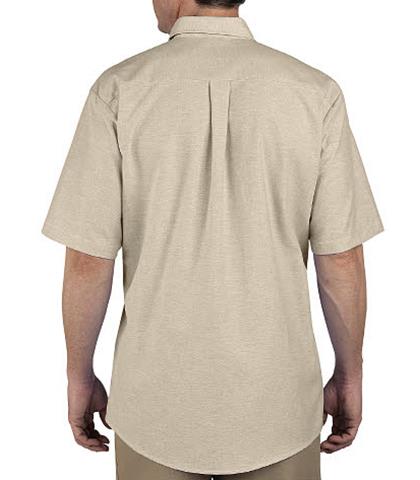 La camisa SS36 de manga larga y SS46 de manga corta están compuestas por una tela Oxford de 4.5 oz 60% Algodón y 40% Polyester. El algodón le brinda suavidad y frescura. El cuello es de dos piezas para darle más cuerpo y el botón la hace ver más formal. La parte trasera es más larga que se mantenga dentro del pantalón, tiene pinzas en la espalda y apertura en la manga para darle más comodidad. Con la calidad Dickies tiene acabado resistente a las arrugas y a las manchas.