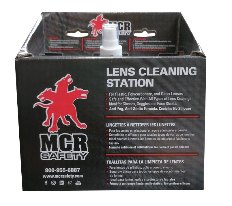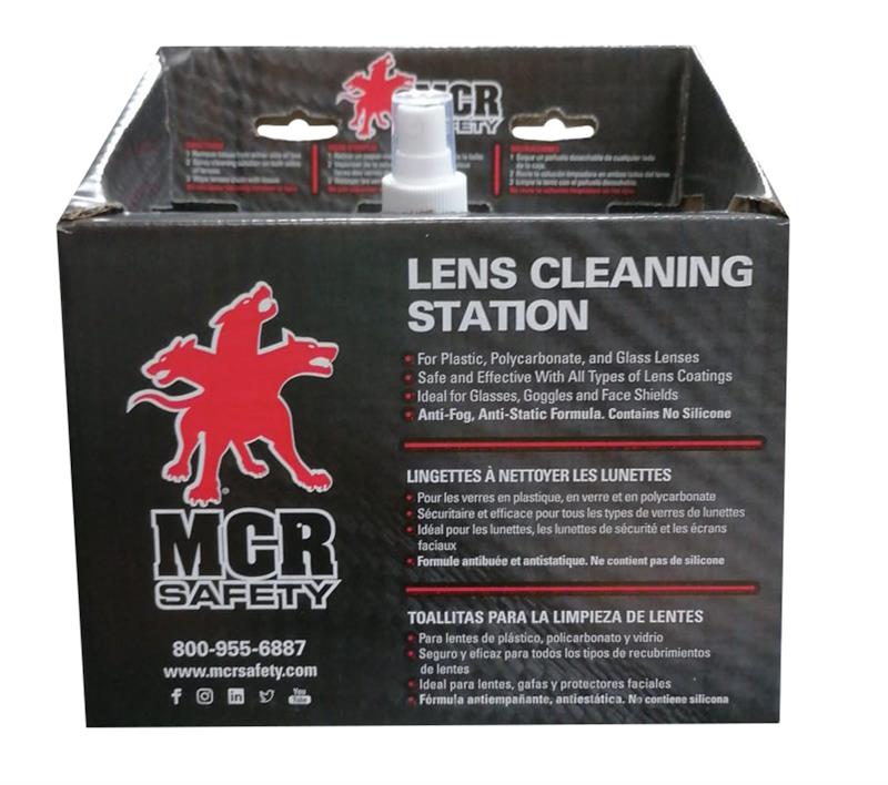 MCR Safety ofrece una amplia gama de accesorios y productos diseñados para el cuidado y mantenimiento de las gafas de seguridad. Entre estos productos se encuentra la LCS1, una estación de limpieza que brinda soluciones completas para el cuidado y mantenimiento de sus gafas de seguridad. Esta estación incluye una solución en spray de 8 onzas y 2 cajas con 300 pañuelos desechables cada una.