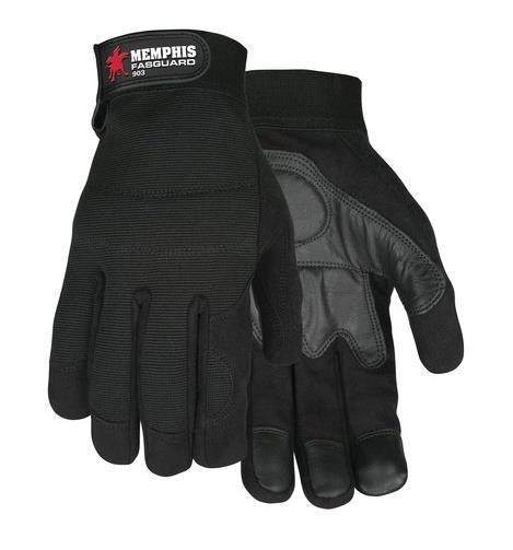 El guante 903 de la serie MCR Safety Mechanics presenta una palma de cuero sintético Premium con un parche de piel de cabra relleno de espuma. Este diseño proporciona una excelente protección contra vibraciones y golpes, lo que lo hace ideal para aplicaciones donde se requiere una protección de alta calidad. El color negro del Spandex® en el dorso del guante oculta la suciedad y ofrece una comodidad extrema. Además, cuenta con una protección multicapa en los nudillos, lo que lo convierte en una opción sobresaliente.