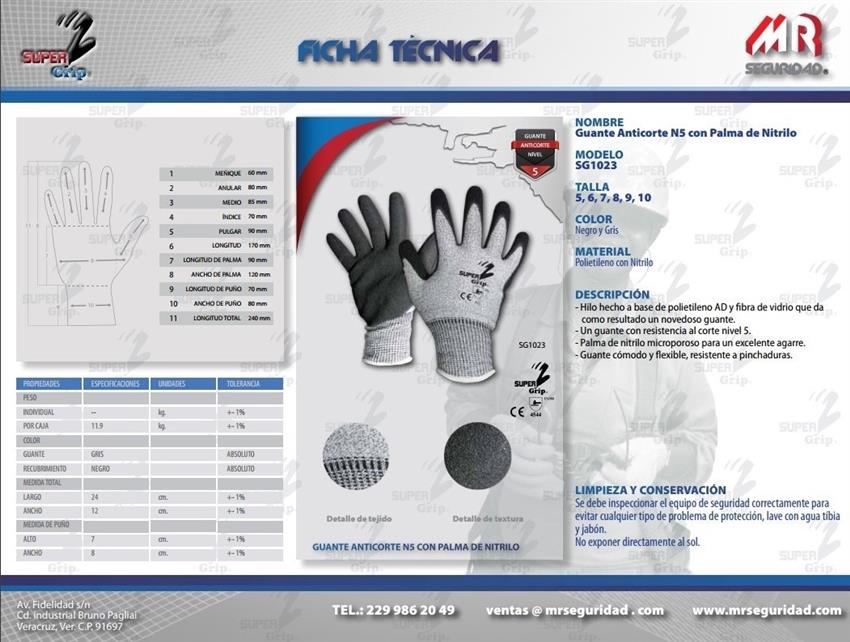 Elimina el contacto directo con los elementos o herramientas de trabajo, reduciendo daños ocasionados por fricción y corte (manejo de cuchillos o navajas). El recubrimiento de nitrilo arenoso ofrece un mejor desempeño en presencia de agua o aceites conservando un óptimo agarre. Ideal en industria petroquímica, extracción de petróleo, industria automotriz, industria del vidrio, industria maquiladora.