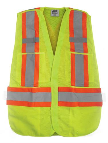 Este chaleco cuenta con características funcionales, como costuras reforzadas, cierre delantero con Velcro y cuatro bolsas frontales que brindan espacio para guardar objetos como bolígrafos, identificadores y teléfonos móviles. Además, tiene una práctica ranura en la espalda alta para líneas de vida o arneses de seguridad.