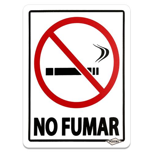 - Diseño claro y universalmente reconocible que muestra un cigarrillo tachado en rojo.