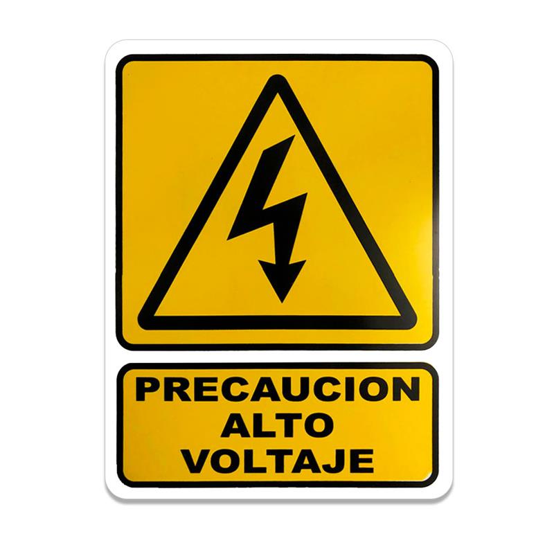 - Diseño con letras negras que dicen "Precaución Alto Voltaje", lo que garantiza una comunicación efectiva.
