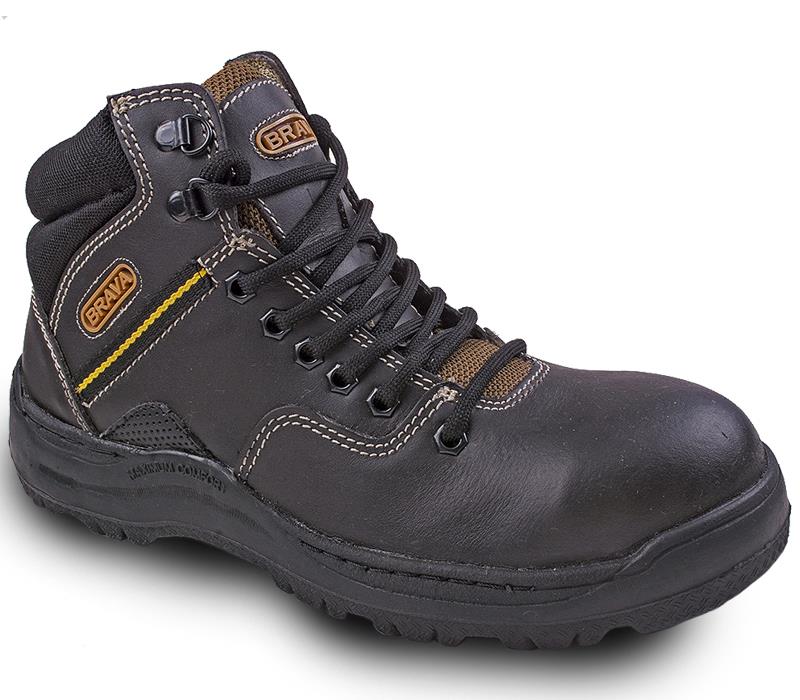 Los Borceguí Café con Casco de Acero son un calzado de seguridad industrial de tipo borceguí, modelo 293 de la marca Brava. Este calzado, de color café, se ha fabricado mediante vulcanización y cuenta con un casco de acero que brinda una protección adicional en entornos industriales. Está confeccionado con piel 100% de ganado vacuno, curtida al cromo, y presenta una planta de Celtec con EVA antimicótica, así como una suela de poliuretano estoperol bidensidad. Este calzado es resistente y cumple con los estándares de seguridad industrial.