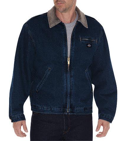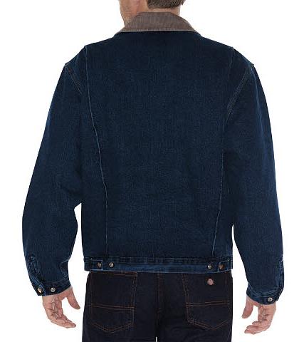 Esta chamarra corta de mezclilla está forrada con tafeta acolchada lo que le da sus propiedades térmicas para mantener la temperatura de quien la usa. Las bolsas en diagonal al frente están forradas para ayudar a calentar las manos.