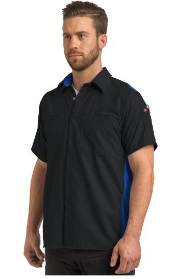 La tela utilizada para la confección de esta camisa de mangas larga y corta , tiene un terminado OilBlok, que es tecnología diseñada para repeler algunos de los fluidos más fuertes utilizados en los talleres. También, tiene paneles mesh para proporcionar mayor movilidad y transpiración mientras que los refuerzos de mesh en las axilas permiten un mayor rango de movimiento y transpiración.