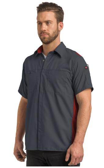 La tela utilizada para la confección de esta camisa de mangas larga y corta , tiene un terminado OilBlok, que es tecnología diseñada para repeler algunos de los fluidos más fuertes utilizados en los talleres. También, tiene paneles mesh para proporcionar mayor movilidad y transpiración mientras que los refuerzos de mesh en las axilas permiten un mayor rango de movimiento y transpiración.