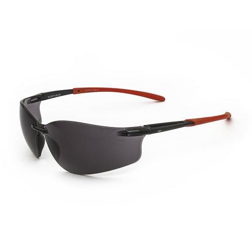 Estas gafas de protección están fabricadas con lente de policarbonato que se adhiere bien al rostro, certificadas para resistir impactos y equipadas con filtro de protección UV. Sus patillas cuentan con brazos de policarbonato e insertos de goma hipoalergénica anatómica para asegurar un buen ajuste. Son ideales para usar con cascos y protectores auditivos. Estas gafas son muy resistentes gracias a sus propiedades contra la fatiga y se recomiendan como protección primaria según las recomendaciones de OSHA. Son aptas tanto para trabajos en exteriores como en interiores y están diseñadas para proteger contra impactos, así como para proteger contra rayos ultravioleta y espectros de baja concentración.