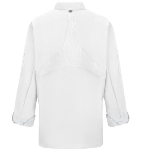 Cuenta con cuello alzado, con forro de malla que proporciona un aspecto profesional y te mantiene fresco y confortable. Con solapas cruzadas y diez botones con protección ultra violeta para evitar que se vuelvan amarillentos.