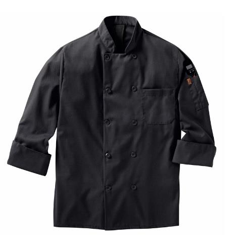 Cuenta con cuello alzado, con forro de malla que proporciona un aspecto profesional y te mantiene fresco y confortable. Con solapas cruzadas y diez botones con protección ultra violeta para evitar que se vuelvan amarillentos.