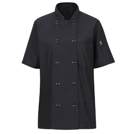 Cuenta con cuello alzado, con forro de malla que proporciona un aspecto profesional y te mantiene fresco y confortable. Con solapas cruzadas y diez botones con protección ultra violeta para evitar que se vuelvan amarillentos.