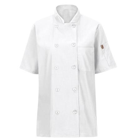 Cuenta con cuello alzado, con forro de malla que proporciona un aspecto profesional y te mantiene fresco y confortable. Con solapas cruzadas y diez botones con protección ultra violeta para evitar que se vuelvan amarillentos.