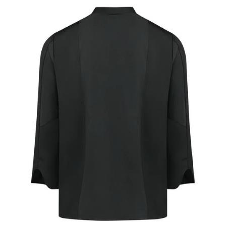 Su frente de doble solapa con botones coordinados y dos bolsas al frente, muestra un aspecto refinado y accesible de la misma manera que sus mangas anchas con sus puños reversibles proporcionan versatilidad. Como toque final incluye una bolsa dual en la manga, para tener a la mano las herramientas de chef, y un cuello forrado que añade confort. La versión para mujer tiene un corte relajado