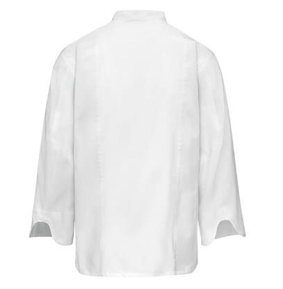 Su frente de doble solapa con botones coordinados y dos bolsas al frente, muestra un aspecto refinado y accesible de la misma manera que sus mangas anchas con sus puños reversibles proporcionan versatilidad. Como toque final incluye una bolsa dual en la manga, para tener a la mano las herramientas de chef, y un cuello forrado que añade confort.