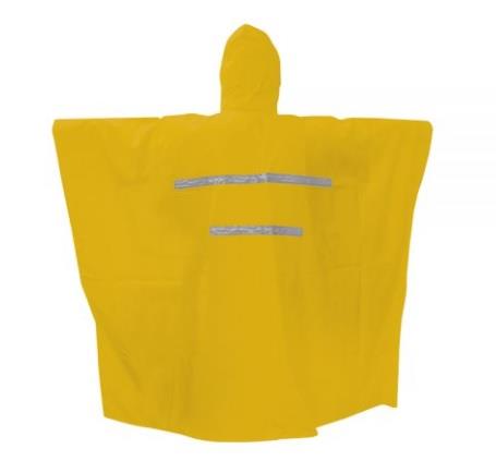 Este impermeable tipo capamanga es una prenda altamente resistente con un grosor de 0.33 mm que lo hace ideal para proteger al usuario de la humedad. Está diseñado con tiras reflectantes de 2 pulgadas en la espalda, lo que mejora la visibilidad en condiciones de poca luz. El impermeable está fabricado principalmente con un 75% de PVC y un 25% de poliéster. Incluye una capucha integrada con cierre de cordón para cubrir completamente la cabeza y broches de presión en el pecho y los costados para un fácil ajuste.