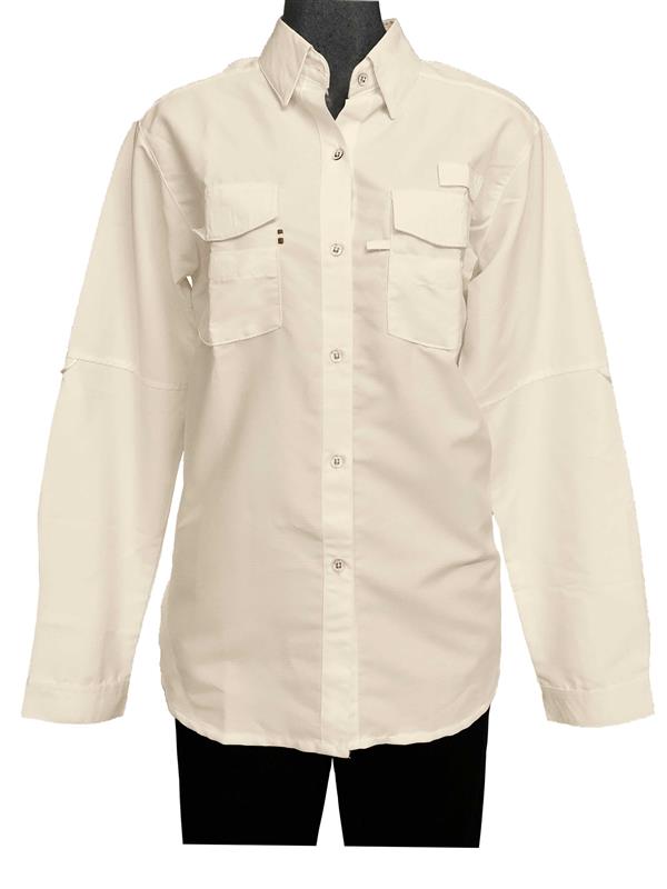 La Camisa para mujer de manga larga combina elegancia y funcionalidad para ofrecerte un estilo versátil. Fabricada en tela Columbia 100% poliéster, esta camisa presenta botones transparentes a lo largo de su cierre frontal, brindando un toque moderno y sofisticado. El respiradero en la altura de la media espalda mejora la circulación del aire, manteniéndote fresca y cómoda en todo momento. La tela ligera de Columbia garantiza una sensación agradable durante todo el día. Con dos bolsillos en el pecho con solapa y otros dos bolsillos pequeños frente a cada uno, esta camisa combina estilo y practicidad. El cuello abotonado y los dos botones en el puño añaden detalles refinados a su diseño. Disponible en la opción de tela Universal Clororesistente en colores arena y rosa, así como en tela Universal Ripstop en una variedad de colores, esta camisa es perfecta para quienes buscan un equilibrio entre moda y comodidad.