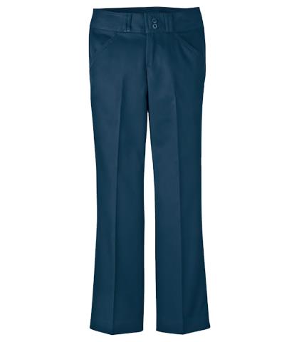 El pantalón junior KP7715 tiene un corte muy juvenil por su pretina ancha y piernas acampanadas. Se cierra con doble gancho y ojal y tiene un botón decorativo al frente. No tiene pinzas ni bolsas traseras para lograr una figura más estilizada, sus bolsillos delanteros están en diagonal. La cintura es ajustable con elástico y botón, tiene presillas para cinturón duales en la parte frontal y trasera al centro; esto junto con la composición de la gabardina 98% algodón y 2% spandex le dan un ajuste perfecto. No tiene logo exterior y se envía con gacho.
