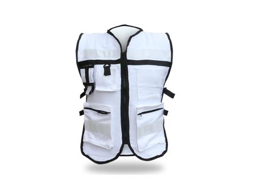 El chaleco tiene múltiples funciones, siendo ideal para mantener al usuario fresco y cómodo en entornos de trabajo diversos. Su diseño incluye reflejantes de alta visibilidad para garantizar la seguridad del usuario en condiciones de poca luz. Además, cuenta con múltiples bolsas externas que brindan espacio para llevar herramientas y otros objetos necesarios en el trabajo.