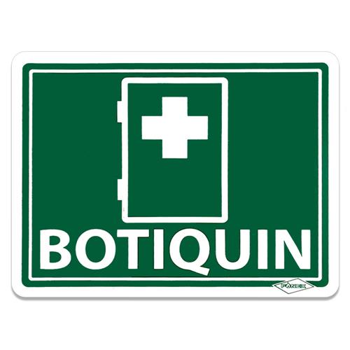 - Diseño claro y universalmente reconocible que muestra la palabra "Botiquín" en letras legibles y en color contrastante.